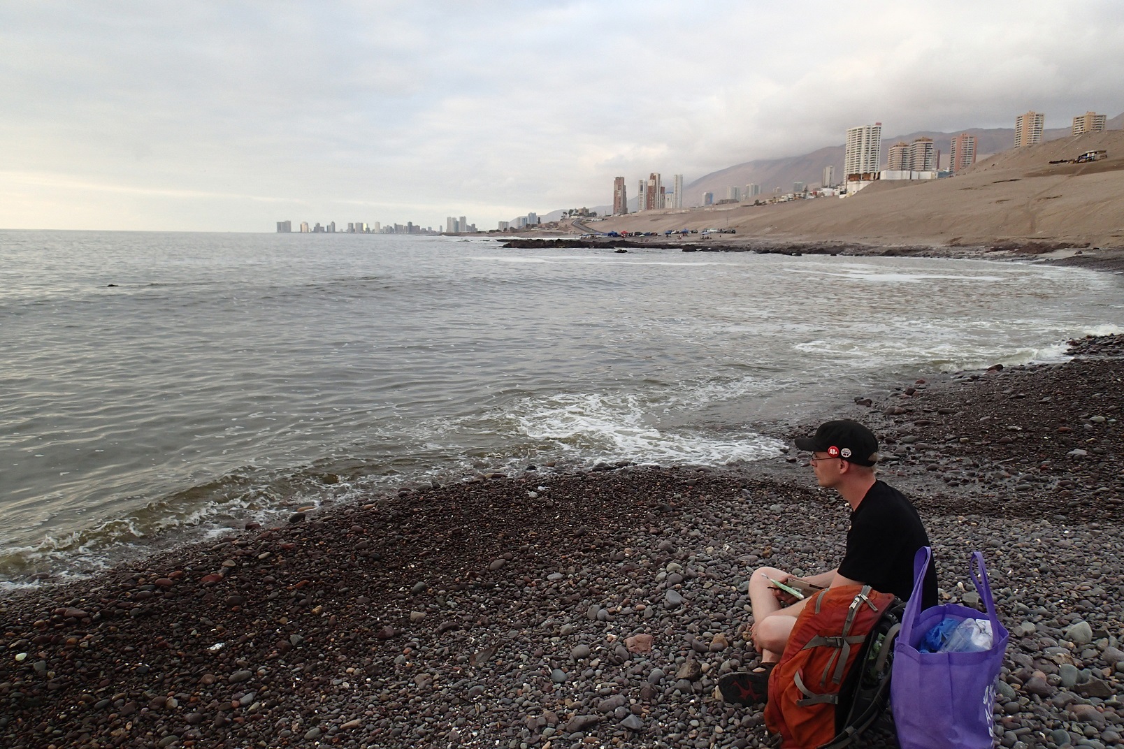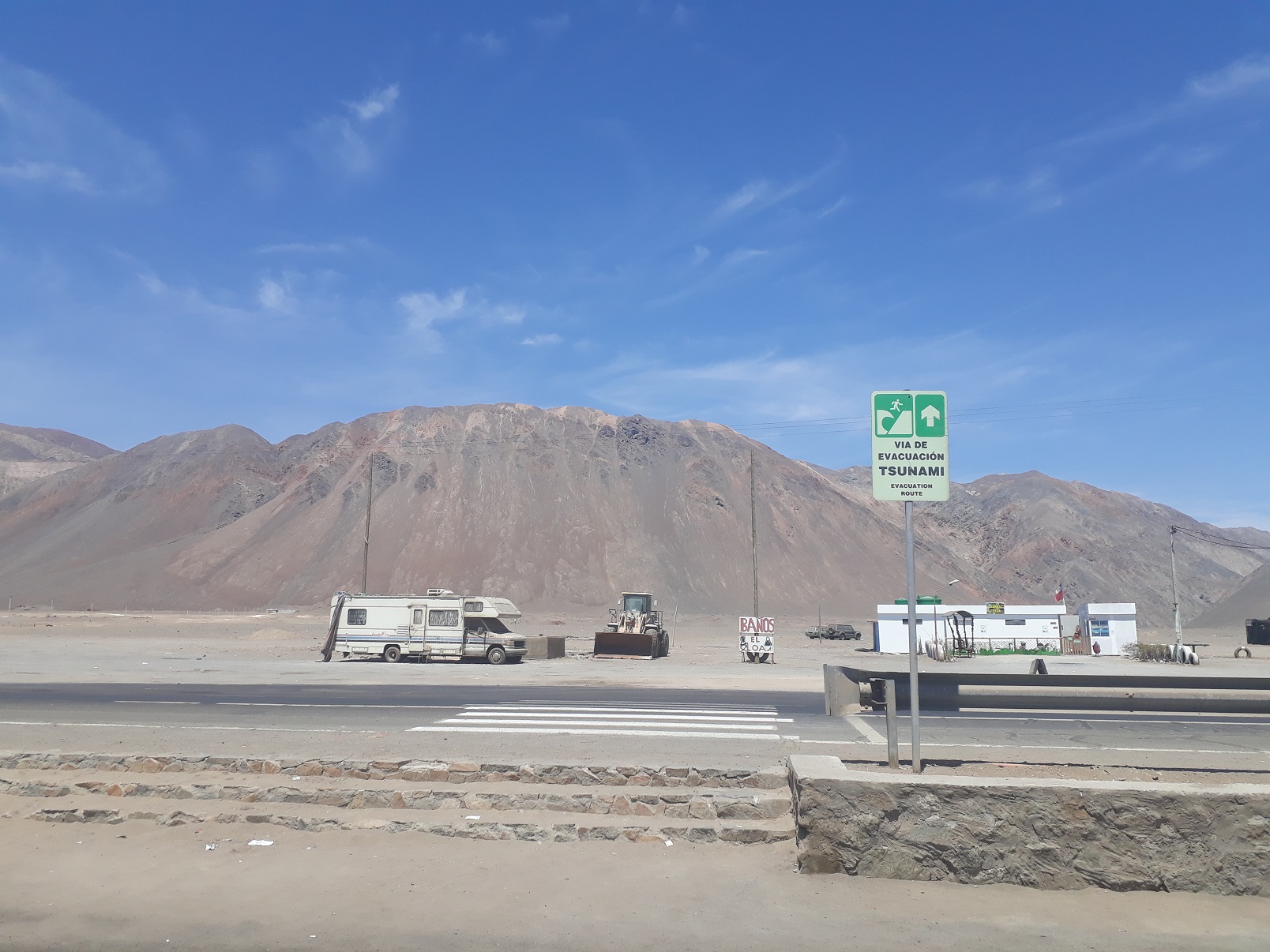 After Iquique, there was Antofagasta. We went there by day bus, and before that we sent our warm clothes from Iquique to San Antonio by mail, just because we didn’t want to carry that stuff with us. Actually, there will be a whole story with our clothes, but later 😉 Our expectations for Antofagasta did not come true at all: it turned out to be a mining town with a dirty ocean, dirty streets and the lack of acceptable places to sleep. The only thing we were impressed with was the road that goes along the coast and along which there was absolutely nothing, just rocks and sand. In the same city, we met a huge cockroach on the embankment, an incredibly smelly hostel room and one person who speaks English.