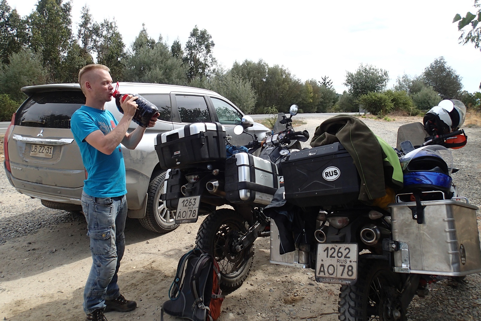We stayed in Cauquenes until we got our salaries. At that moment we already had a problem with leaking fork on Tim’s bike; actually, we made the maintenance for both forks before leaving Saint Petersburg, but it seems like people who had been putting Tim’s bike into the container made it somehow wrong: the fork was pinched all the time during our motorcycles transportation, and we noticed it’s leaking already in San Antonio but then it was just a small leakage. Now it had become worse. So we were heading to Concepción, the second capital of Chile. The city itself is located very close to the ocean, but the heat was still hellish. Thirty kilometers from the city there is a farm we were heading to; Pablo from Couchsurfing promised to help us with Tim’s bike and to host us there for a couple of nights. When we had almost reached the place, we managed to quarrel about something stupid and absolutely not important because the heat makes both of us crazy and nervous… I left the roadside parking where we had a break because I just wanted to have a small ride alone, but when I returned, Tim wasn’t there anymore. I kept waiting for Pablo there and when he came I followed his car to the farm. Tim arrived a bit later as well. Everything had been resolved by itself, so we just needed to take a break and to calm down. A small solo ride is always a good option!