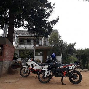We arrived at moto camping around midnight, pitched a tent, cooked dinner, and the next day was for the laundry. Also, it was necessary to clean and tighten the chains. And it started… On my motorcycle, the adjusting bolts could not be unscrewed from the swingarm. The short fifteen-minute procedure took at least two hours and had much more things to do than just turning the bolts: we had to take my rear wheel off, to unscrew the chain adjusting bolts, to clean and to lubricate them and so on. Well, I don’t know the story of my KTM, but it seems that before it was not that beloved. Moto camping turned out to be a normal place, but too glamorous and for glamorous motorcyclists. For travelers like us, it is not the right place. But we had a good shower there! The owner warned us about “very hot water with dangerous pressure”, but for us, it was the first place where the shower worked properly as we have at home! In Chile, hot water is not offered to people by the city. Every house has to have a boiler or any other device to heat water, and everywhere they are buggy: they can suddenly drench you with cold water, or there is no pressure, or hot water ends in three minutes… so having a hot and well-working shower in Chile is really a big pleasure. The owner of that campsite is also a motorcyclist who had been traveling around the world for five years. After that he came back home and managed to put his profession and his passion together: he is an architect. At the campsite, he designed everything himself, everything looks really cool, but for us, it was still too much. The right word is “glamorous” – by our standards. Some people may like it but not us.