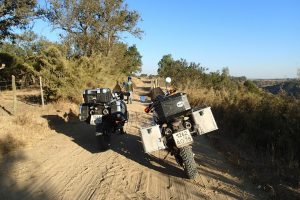 My surgeon would probably be very displeased with me if he found out what is our ride about. Before the operation, I knew exactly what to do with the shoulder in case of its dislocation, but now it has suddenly become a problem: what if I crash or fall even a little? I felt excited. My nerves were becoming weaker and weaker after difficult ascents or descents, the pain was coming again and I had to give up at several moments. Tim was riding my bike instead of me at the places I felt too unsafe. In a word, we didn’t want to ride the same way back, and in 700 meters before the main road, we were in front of the fence – again. This time the gate was locked with three locks, and behind the gate, there was an intersection with three more gates to each direction. I have never seen anything like that! Luckily, there was a house in 200 meters away, so I went there and explained: dos motocicletas, turisto russo, we want to get to the main road, how to win the gate? The answer they gave to me was to ride left to their yard, after that around the house through the garden and soon we will find ourselves on the other side of the fence. Crazy!