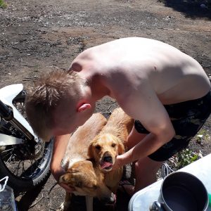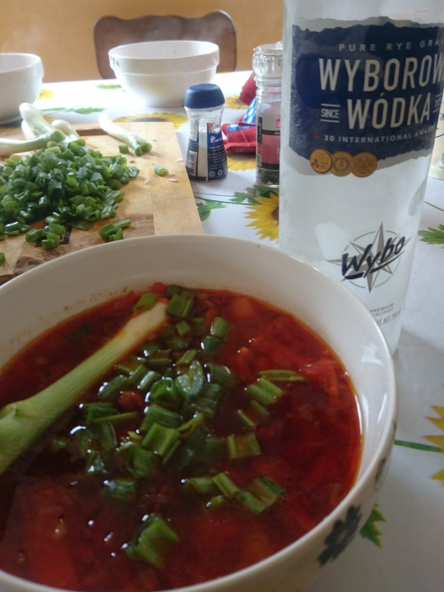 Pablo is a motorcyclist, too. He traveled a lot on foot and hitchhiking and just a bit on his bike. Besides us, there was also his girlfriend Rachel from Ireland and two of her brothers on the farm. We had a good time together making barbeque, cooking borsch (the red Russian soup yeeees, delicious!), drinking wine and vodka and working.