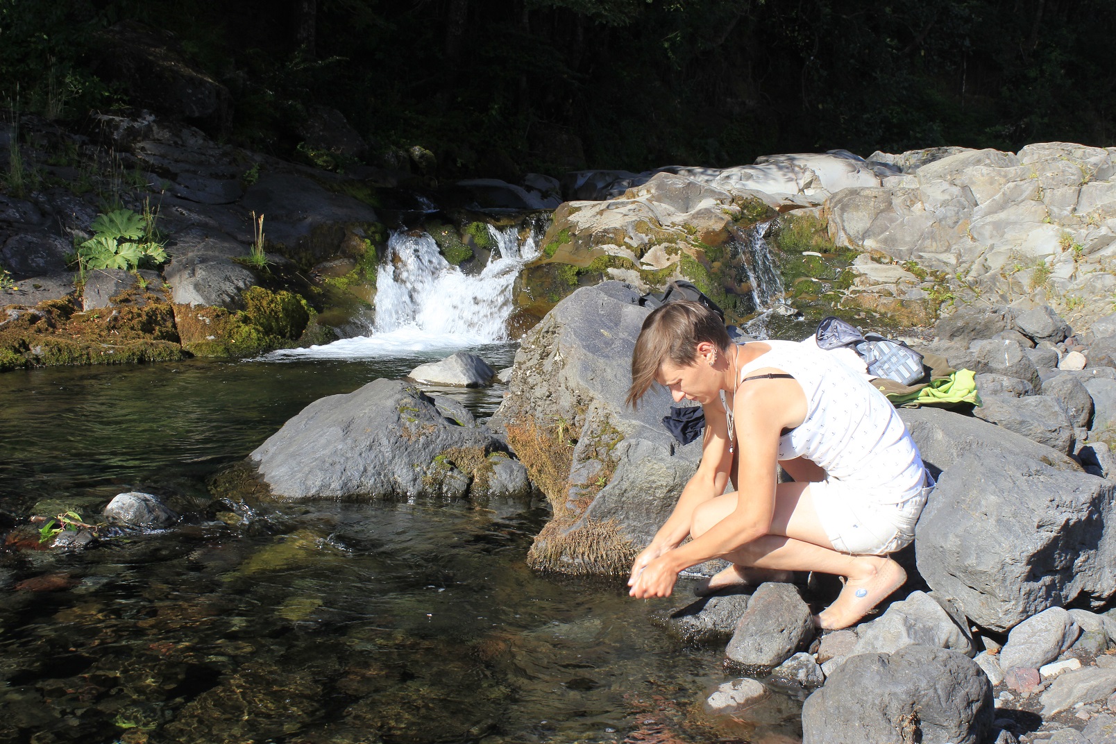 For the first time during our trip it started to rain. The real rain! We even had a small stop to put our rain suits on. It was already late and dark, but we had just a little more than one hundred kilometers left to the place we were going to. At midnight, the asphalt road turned to the gravel, and after twenty kilometers more we finally arrived at the parking lot marked on iOverlander as good place to stay for a night before entering the national park. We had a quick dinner there – with little wine, of course, and fell asleep. In the morning there was an opulent landscape waiting for us! First, it suddenly turned out that we could stand there longer and work because we found one place where our Chilean mobile internet was working. Secondly, there was a mountain river with pure water coming from the mountains. And thirdly, there was plenty of firewood around to collect. The real paradise! We even had such luxury as clean hair: the water in the river was very cold, but still not freezing cold, so it was possible to have a good shower there without worries that our brains will be frozen.