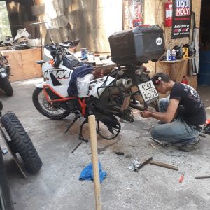 From the coast, we headed to Temuco, where the southernmost KTM dealer of “normal Chile” is located. We bought engine oil, cooling liquids (we have different… stupidly), oil for my leaking hydraulic clutch, rear brake pads for Tim’s bike… One hundred dollars just for one pair of pads!!! Crazy ? Oils were also very expensive, but we had no options. The owners wished us all the best, and we continued to Conguillio – a national park, Pablo’s friends told us about.