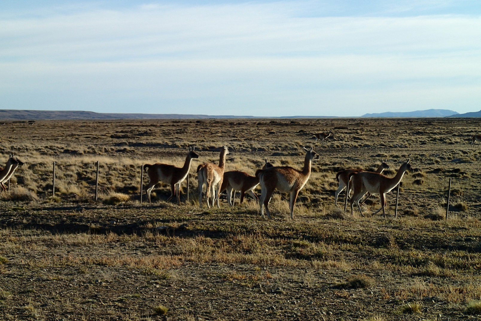 Along the road, there are grazing guanacos. Guanaco is like a camel, but not a camel. During our acquaintance with them, I had to brake VERY hard in front of one of them, when it just suddenly appeared on the road, but after that guanacos were just making us smile. So cute! There are also nandus, which are like ostriches, but not ostriches. It was very funny to go with one of them in parallel: I am riding on the road, and he is dumping between asphalt road and fence at the same speed, almost 50 km/h! ๐
