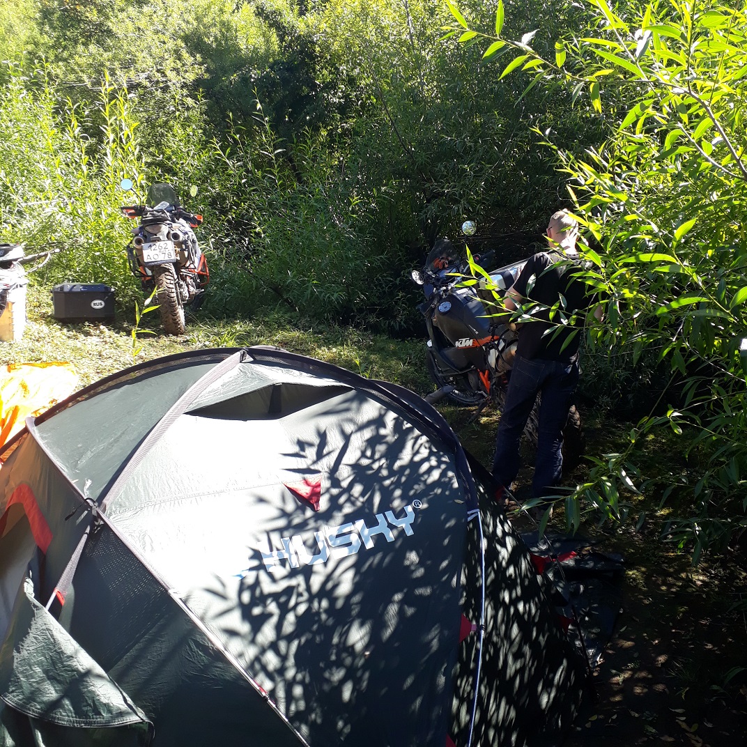 Я потеряла ключ от мотоцикла, потому что спешила. Спешила, потому что очень хотелось этим же вечером оказаться уже у чёрта на куличках, докуда было почти четыреста километров ходу. На момент выезда из Койайке это было чуть больше трёхсот. Дело было в девять вечера. Не знаю, чем я думала, пока надеялась куда-то успеть, но адекватность взяла-таки своё: уже через пятьдесят километров от Койайке мы встали в государственном кемпинге, где утром нужно было затопить печь, чтобы помыться в тёплом душе, и всякое такое. Связи не было совсем. Ночью три градуса выше нуля. Доброе утро в палатке, завтрак, душ и мы двигаем дальше. Ну сегодня-то точно большой день!