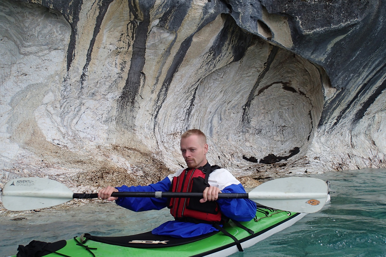Я была счастлива снова оказаться на воде. Даже моё левое плечо, похоже, было благодарно за подобную тренировку. Для Тимофея же это был первый опыт каякинга, и, чёрт подери, я ему завидую! Он перевернул каяк в самом большом и глубоком озере Чили! 😀 Его глубина посередине – порядка 500 метров, максимальная – 590. Половина озера в Чили, половина – в Аргентине. Бирюзовый цвет воды обусловлен метеоритным минералом, который местный чел назвал beridium. Я гуглила-гуглила, но так и не въехала, о чём речь. Бериллий – знаю, беридий – не, не слышал! И тем не менее, красота нереальная. Хотелось бы, может, и подольше там поболтаться, но не озёрами одними…