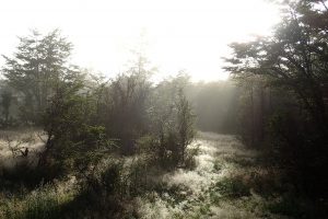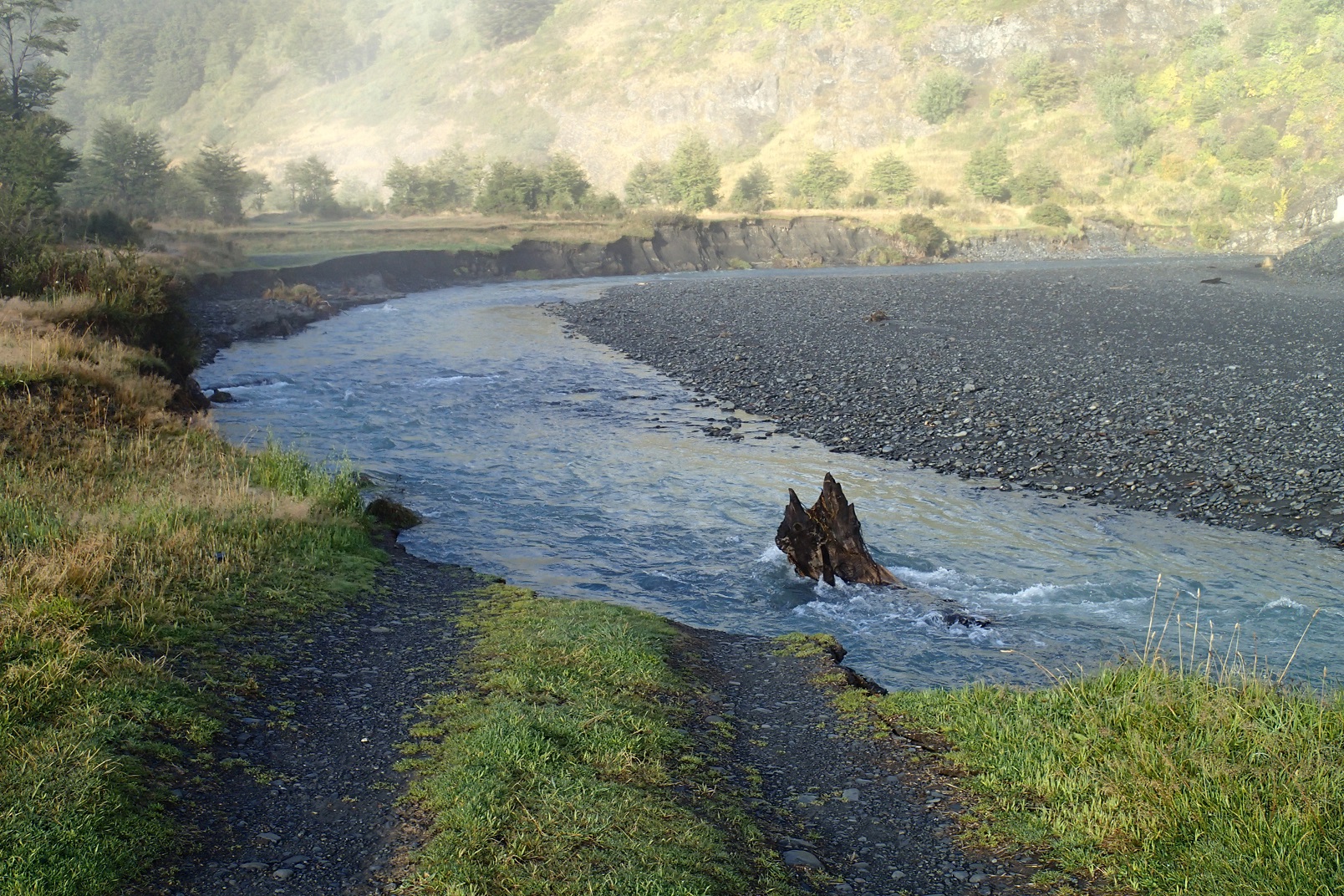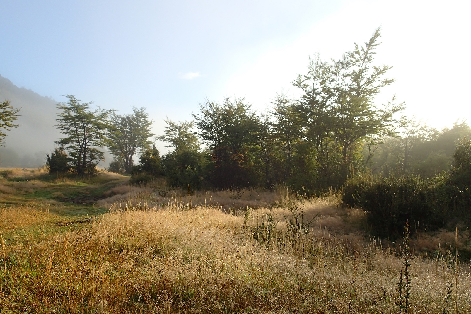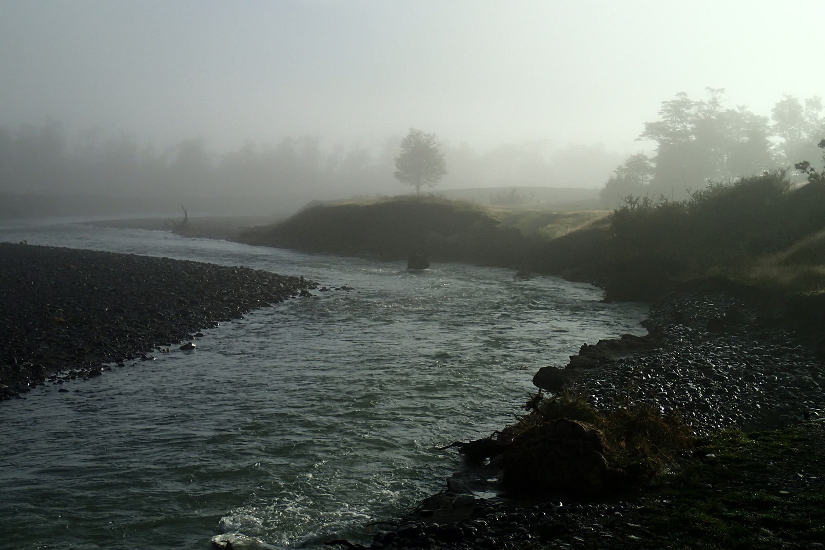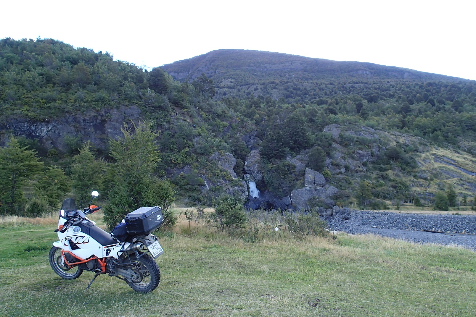 Снова началась чилийская грунтовка. Далеко мы в тот день не уехали, да и не собирались: на территории парка нельзя кемпиться с палаткой, только в заранее зарезервированных кемпингах, и нужно было встать где-то до въезда в парк. Нашли чудесное место с водопадом, несколькими стоянками, всё здорово, река шумит, лес рядом, дрова есть! Просто великолепно! Выпили винца (соскучились по чилийскому) и спать. Утром нужно было очень рано встать и тут же выезжать, чтобы успеть на следующий день пройти пешком что-то около двадцати километров по одной из троп парка. Будильник зазвенел в семь, но было непонятно, всё-таки сейчас семь или восемь? Здесь время не переводят, там переводят, наручных часов нет, какое время телефон показывает? У меня показывал вообще два. С разницей в час. Но вставать было глупо: было темно! В первый раз за всё это время я поняла, что зима близко. И шёл дождь. Коллективный разум таки принял решение: сегодня никуда не едем. Еды вроде бы нам должно хватить, а так – переждём дождь и завтра с утра выдвинемся. Был целый день тупняков. Тимофей плёл сетку для моего мотоцикла из неудачно купленной автомобильной, я попыталась поработать, но довольно быстро кончился ноут, и мы просто тупили. Пили чай. Дождь закончился только ночью.