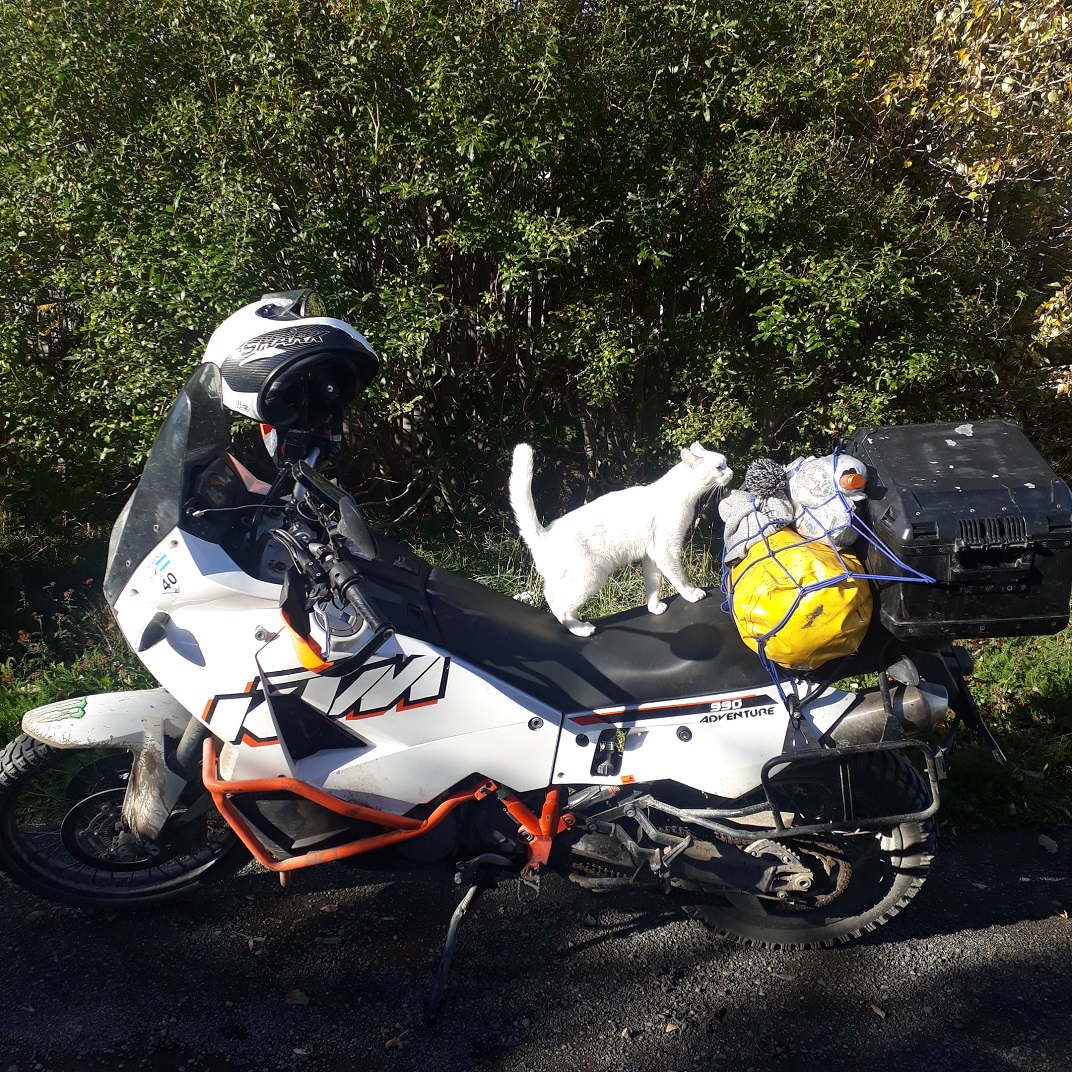 Пришли наконец-то и ремкомплекты. В сервисе КТМ всё установили и всё было бэнч. Мы на радостях уехали, я даже с новой цепью и звёздами. Но уехали недалеко… Через десять минут вернулись. Моё сцепление снова перестало работать. На следующий день был первомай. Выходной. Механик впрягся выйти на работу и ещё раз проверить, что же там за беда с гидравликой. Проверил. Сказал, что нужно менять всю ручку… Оооо, эти муки ожидания! Ручка приехала ещё через неделю. К Дэнни уже приехала подруга из Бразилии, Эвелин, и мы тусовались вчетвером. Ожидание было скрашено как надо, было действительно прикольно, но… как же хочется ехать!!! И тем не менее, всё когда-нибудь заканчивается. Закончилось и это. Мой байк был готов, мы купили билет на паром и собрались. Да, зима постоянно приближалась и да, было жаль времени, но в конечном итоге оно не было потрачено впустую и это прекрасно. Спасибо, Дэнни, спасибо за всё! Твоя кошка по кличке Koshka меня покорила 🙂