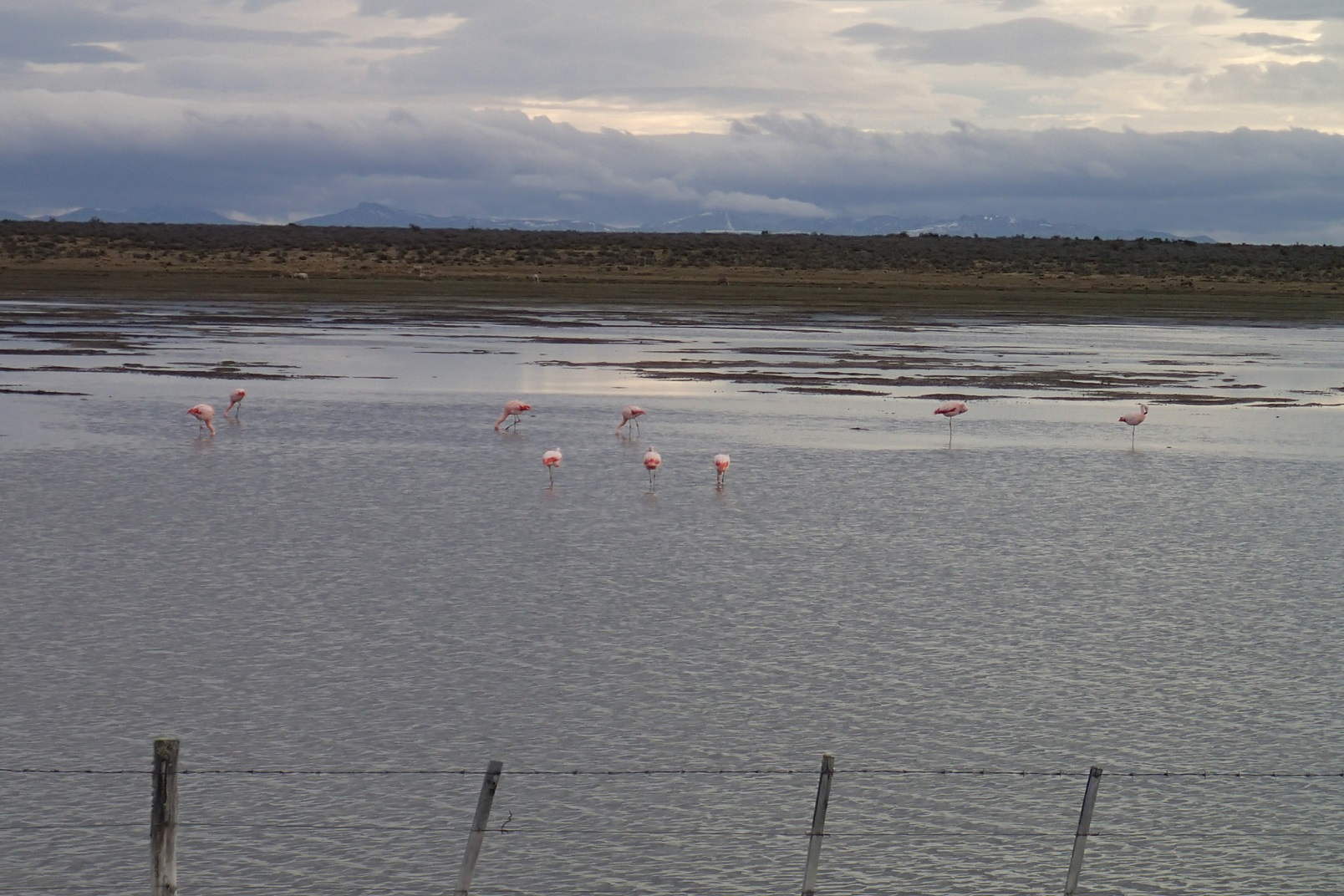 Печка у неё там обычная есть, на которой и готовить надо. Намучились, ибо долго. Но нас пустили на кухню греться! Потому что на улице… короче, когда мы пришли к палатке укладываться спать, её можно было сломать: заиндевела. Утром подорвались в Пуэрто Наталес, забрали там свои кофры под хозяйские возгласы «а мы вас уже два дня назад ждали!», упаковались и выехали в Пунта Аренас. Там всего-то порядка двухсот пятидесяти километров, но помёрзнуть у нас получилось нормально. Не сказать, чтобы дорога сильно видовая была, но фламинго вот снова посмотрели, да. В Пунта Аренас нас ждал хост… и мы думали покинуть этот милый город через три-четыре дня. Но…